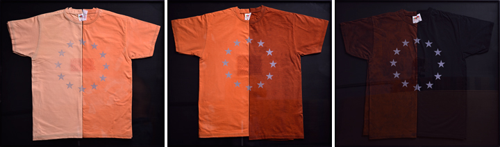 Camisetas degradadas con lejía / tablero de contrachapado, Impresión en metacrilato. 100 x 300 cm. 2017.