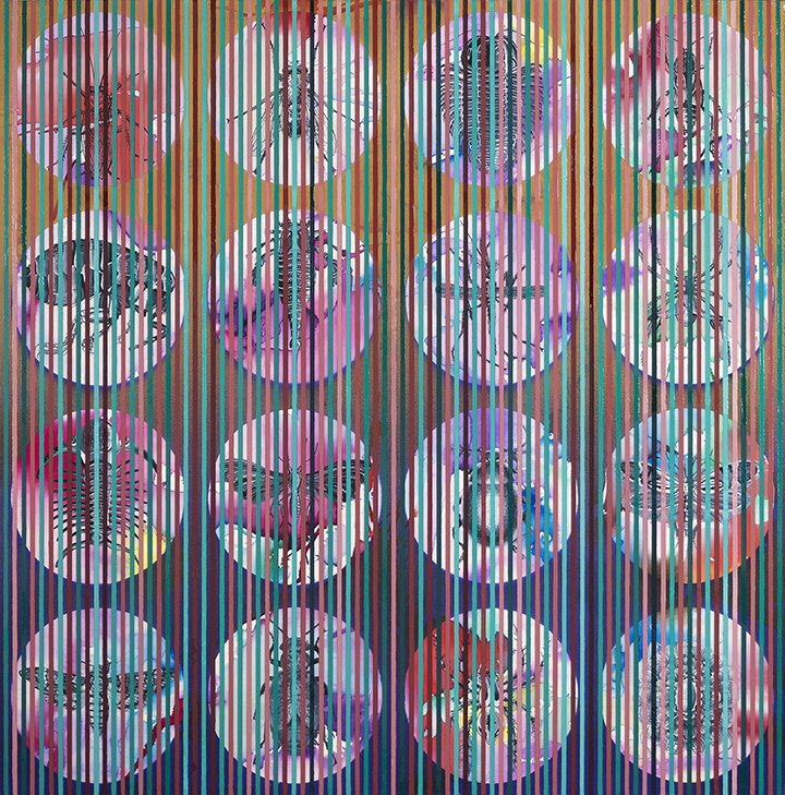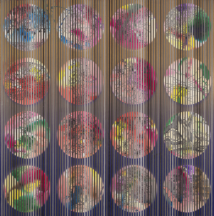 Acuarela, acrílico y óleo / papel acuarela adherido a cartón pluma 10 mm. Marco madera y metacrilato. 140 x 140 cm. 2020.